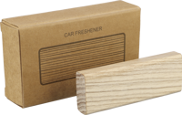Natural beechwood car air freshener with 2 � 3g alcohol-free sandalwood scent (one pre-filled, one refill). Clips to most standard air vents. Packed in brown cardboard box with illustration.