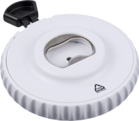 Recycled mechanical push button dice. Press to spin the internal mechanism and reveal a random number from 1 to 6. Includes a bottle opener on the back and a small Recycled logo.
